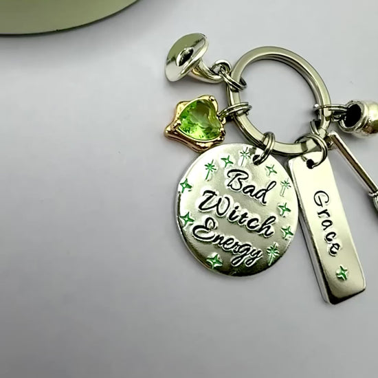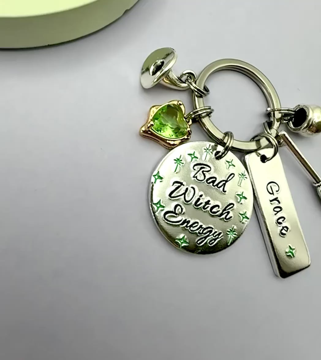 💚 Bad Witch Energy Keyring - Green Witch Vibes with Personalised Tag & Charms 💚