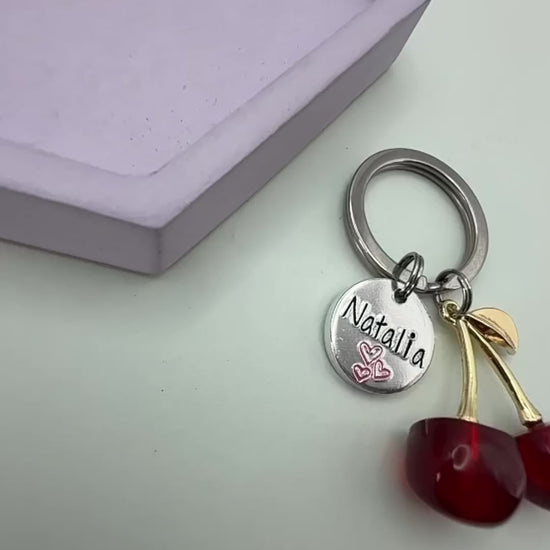 Cherry Charm Keyring • Personalised Name Key Chain • Cherry Bag Charm • Cute Gift • Bag Or Keys Accessory