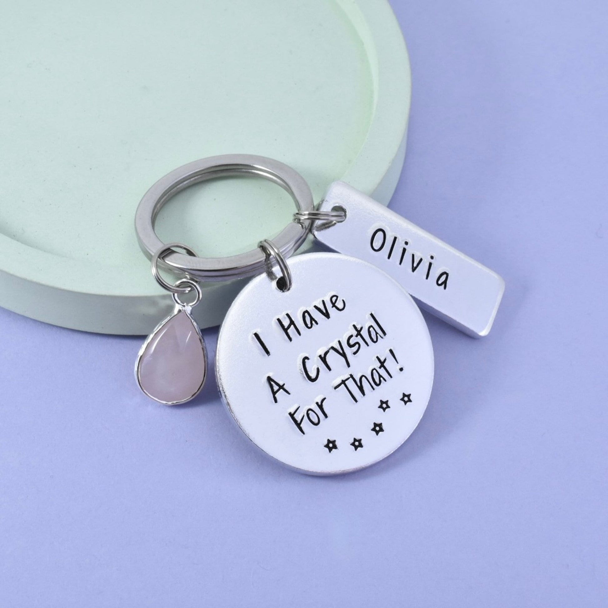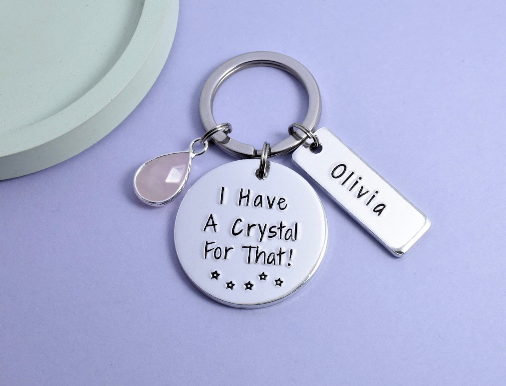 Crystal Keyring • Personalised Crystal Lover Key Chain • Funny Crystal Fan Gift • I Have A Crystal For That! • Rose Quartz or Aventurine