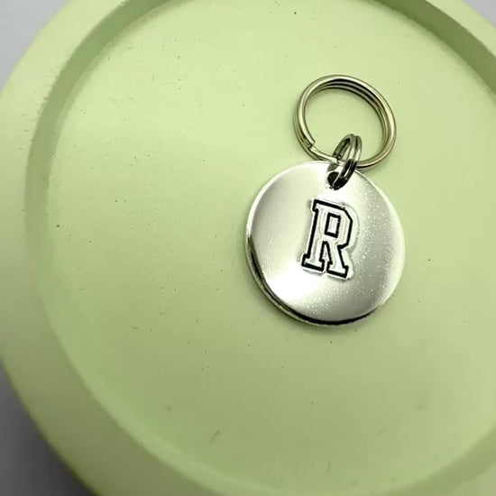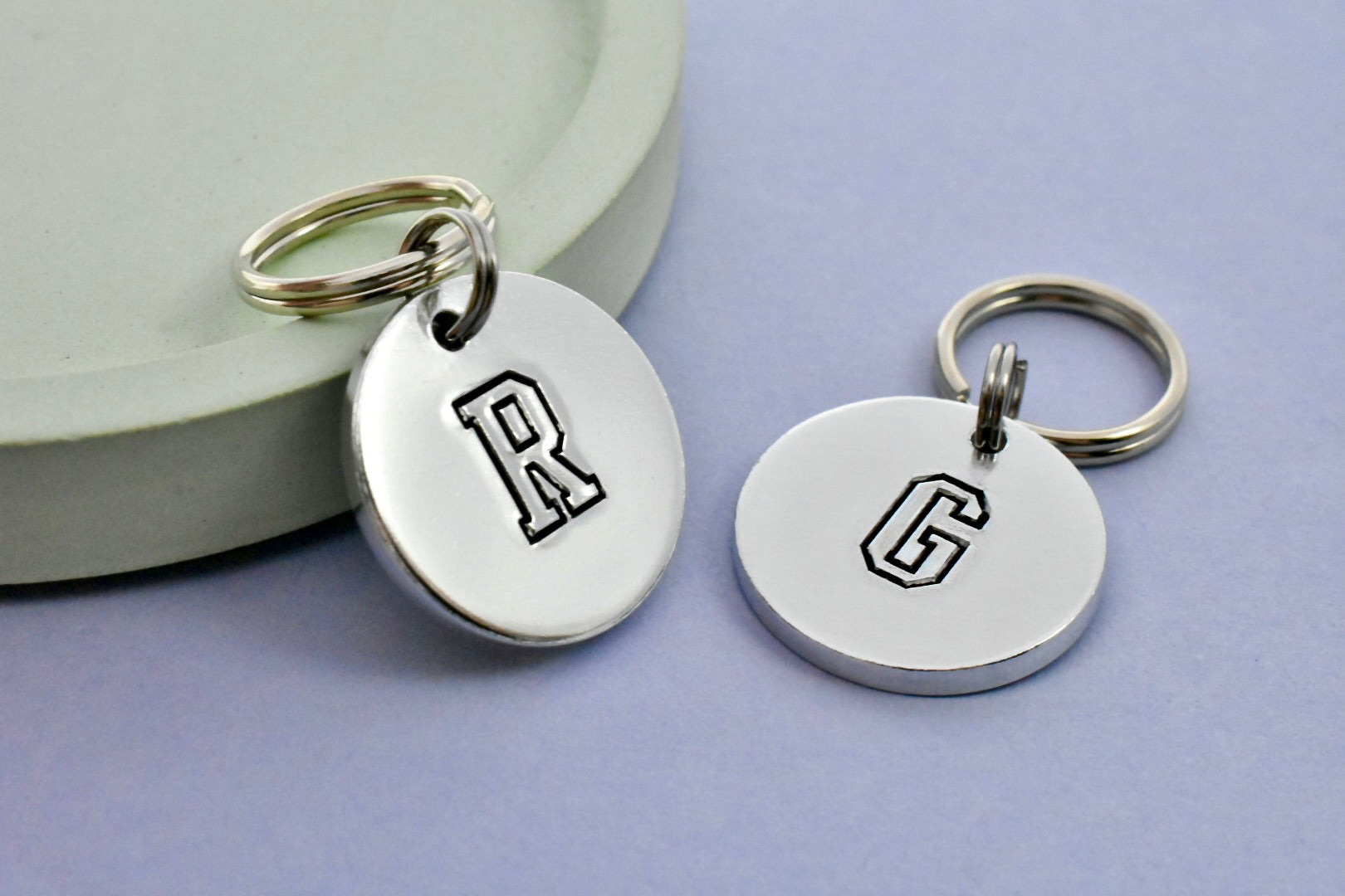 These small aluminium discs are hand-stamped with a single uppercase initial