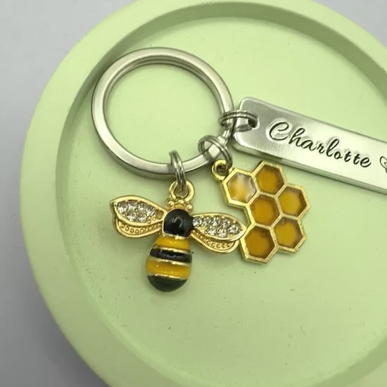 Personalised Bee Keyring • Custom Name • Nature Lover Keychain • Beekeeper Gift