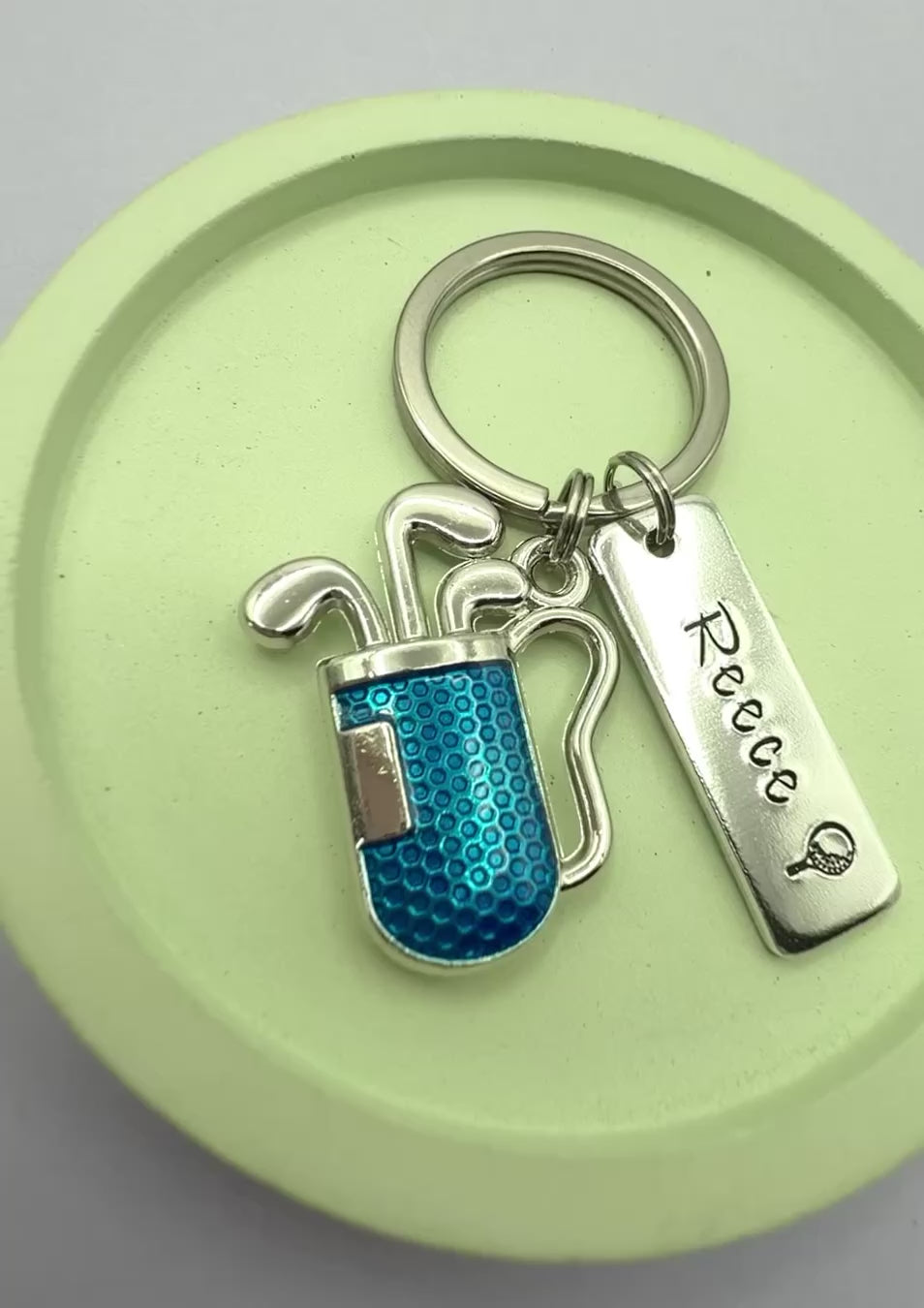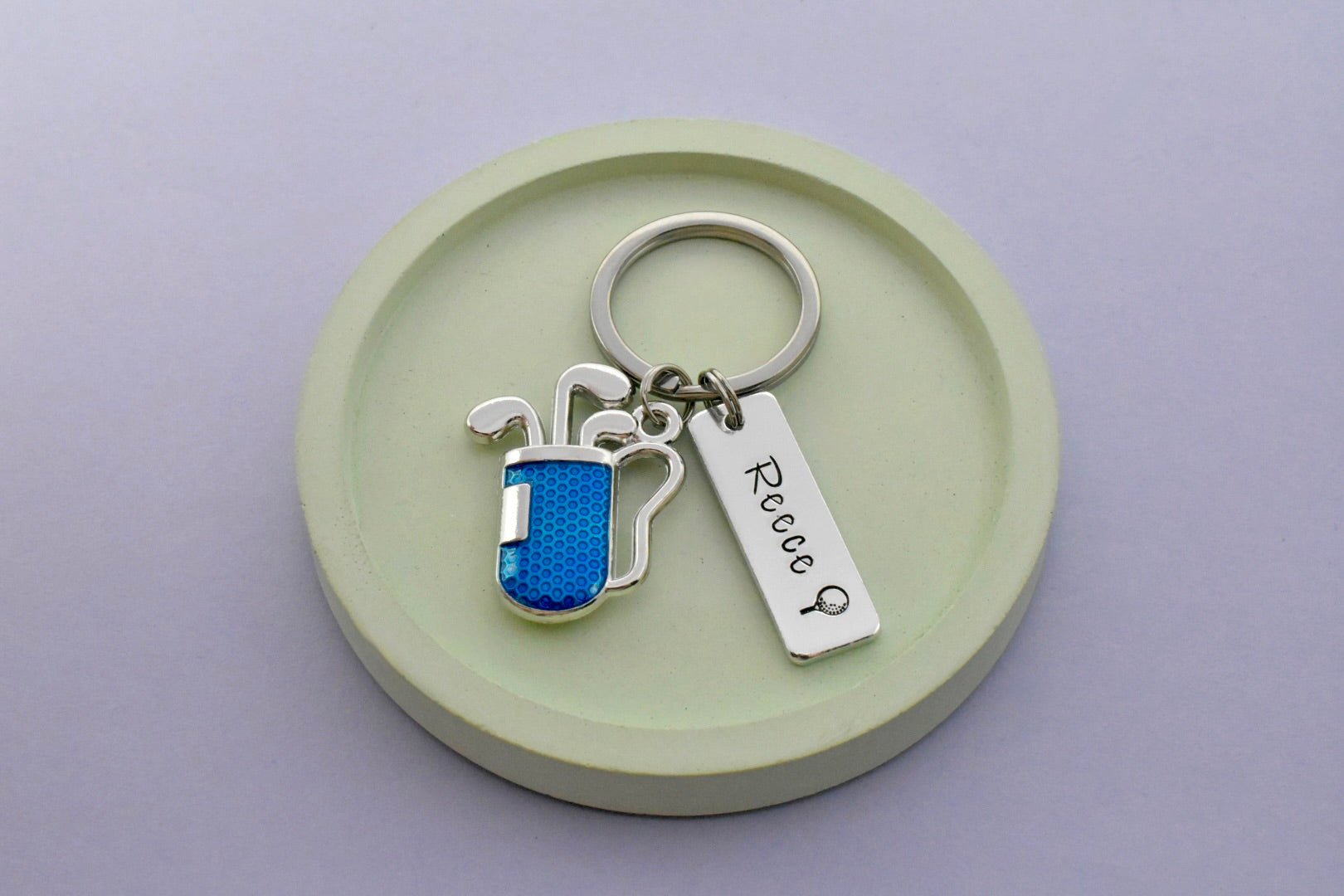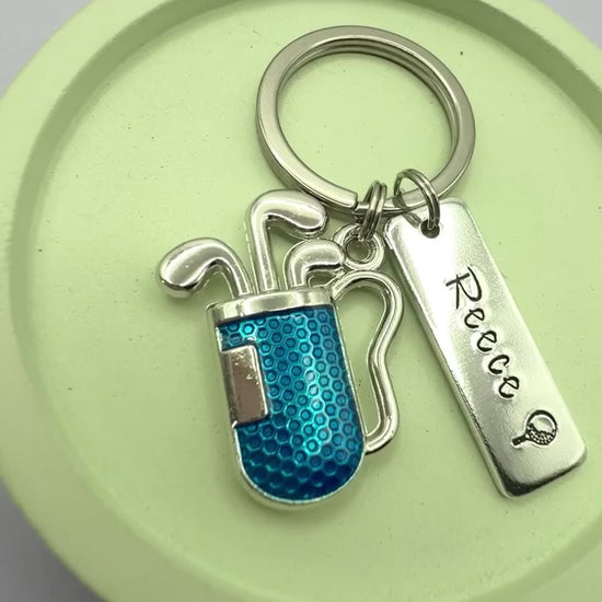 Personalised Golf Keyring with Blue Golf Bag Charm | Handmade UK