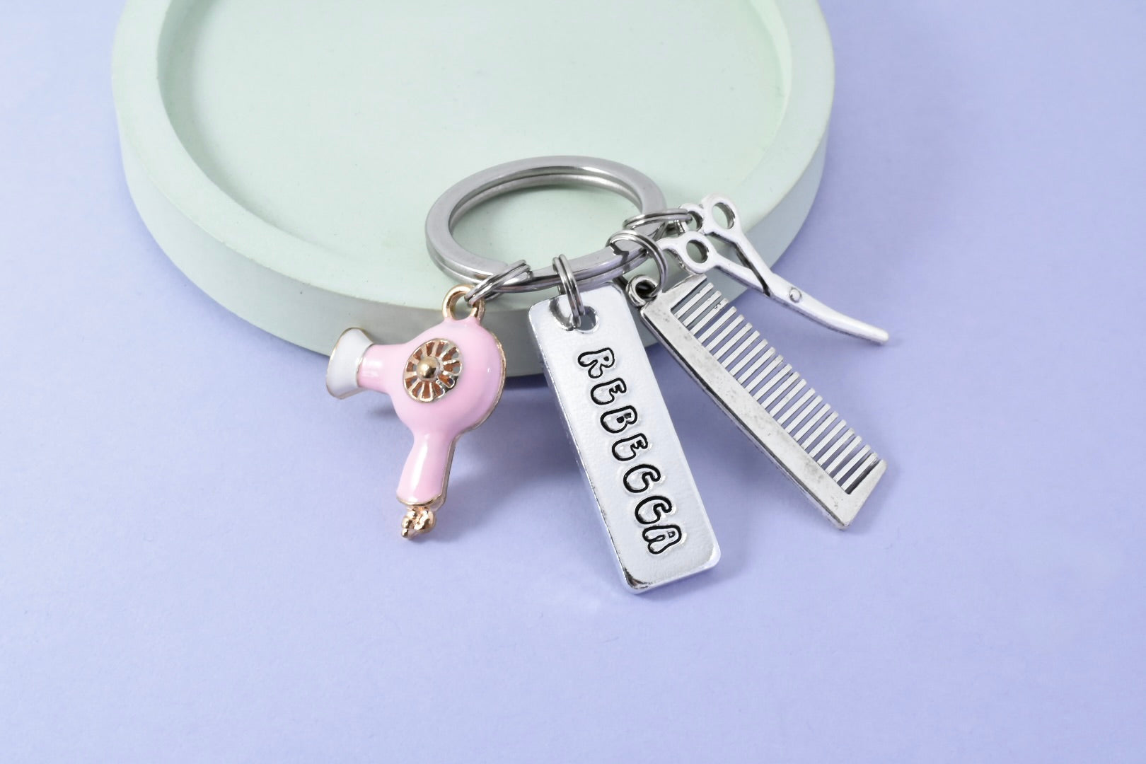 Personalised Hairdressers Keyring • Hair Stylists Key Ring • Newly Qualified Hair Tech Keychain • New Salon Gift