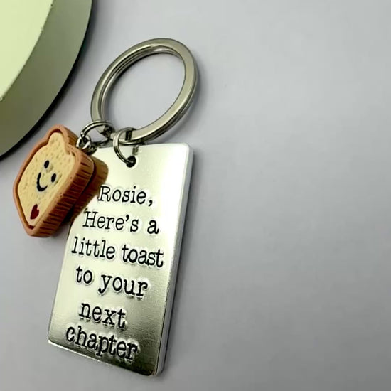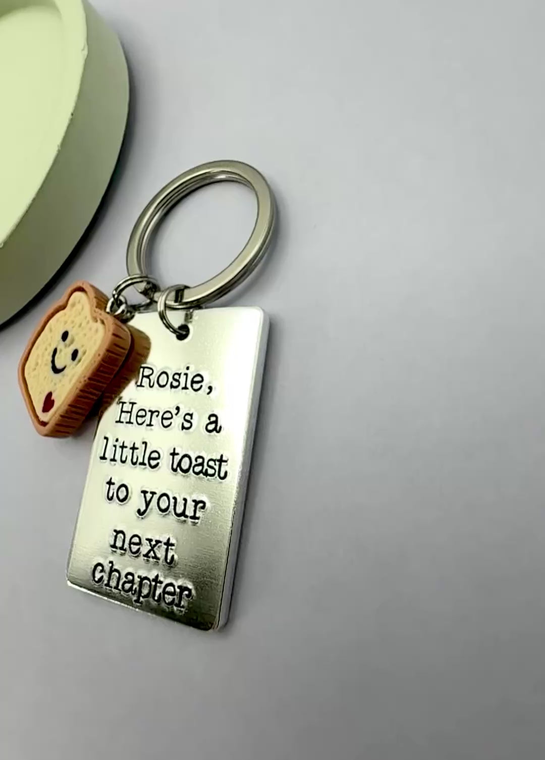 Personalised “Here’s a Little Toast” Keyring • Choose Your Phrase • New Chapter, New Job, New Home or Just to You • Cute Toast Charm