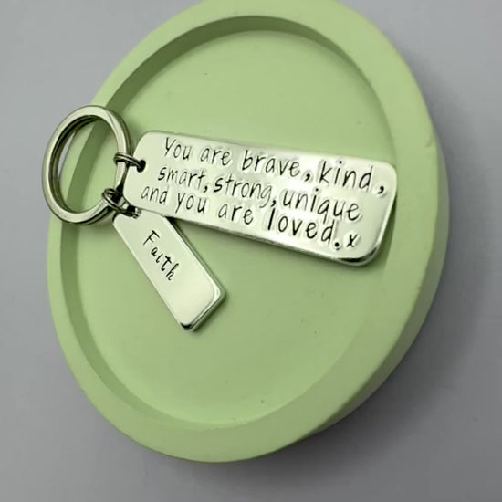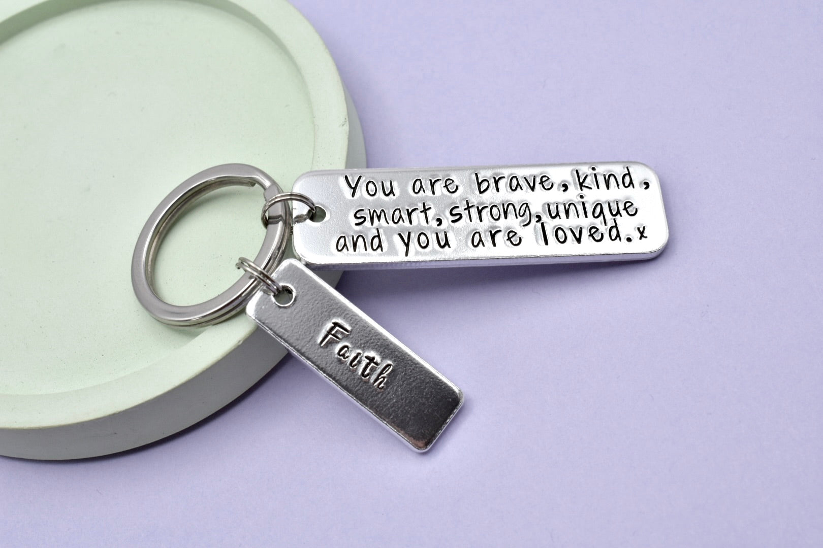 You Are Brave, Kind, Smart, Strong, Unique and You're Loved Keyring • Personalised Wellbeing Keyring • We Love You Gift • Believe In Yourself