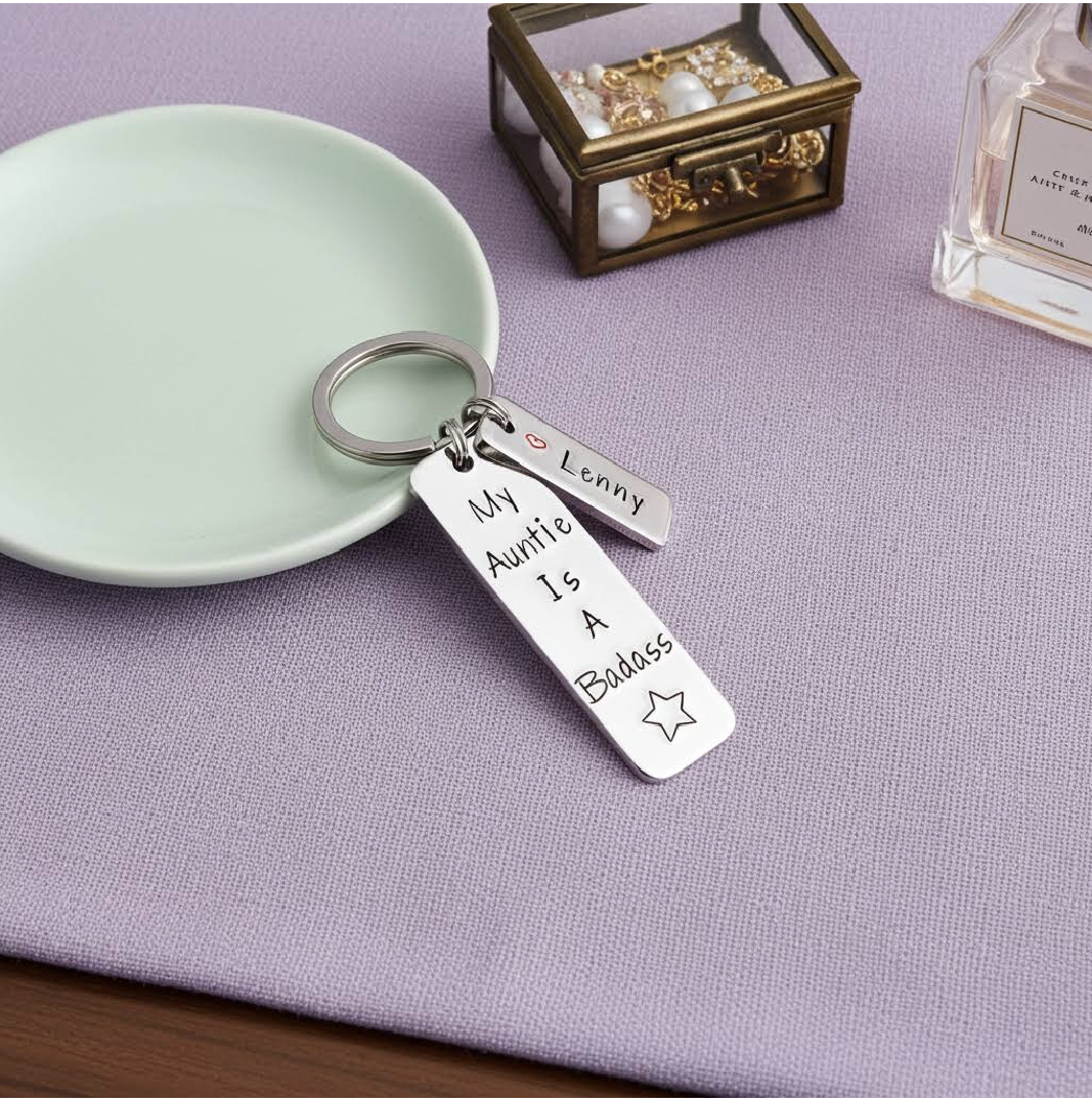 Personalised "My Auntie Is A Badass" Keyring • Custom Name • Cool Auntie Gift • Uncle Gift • Strong Aunty Gift • Fun Keyring