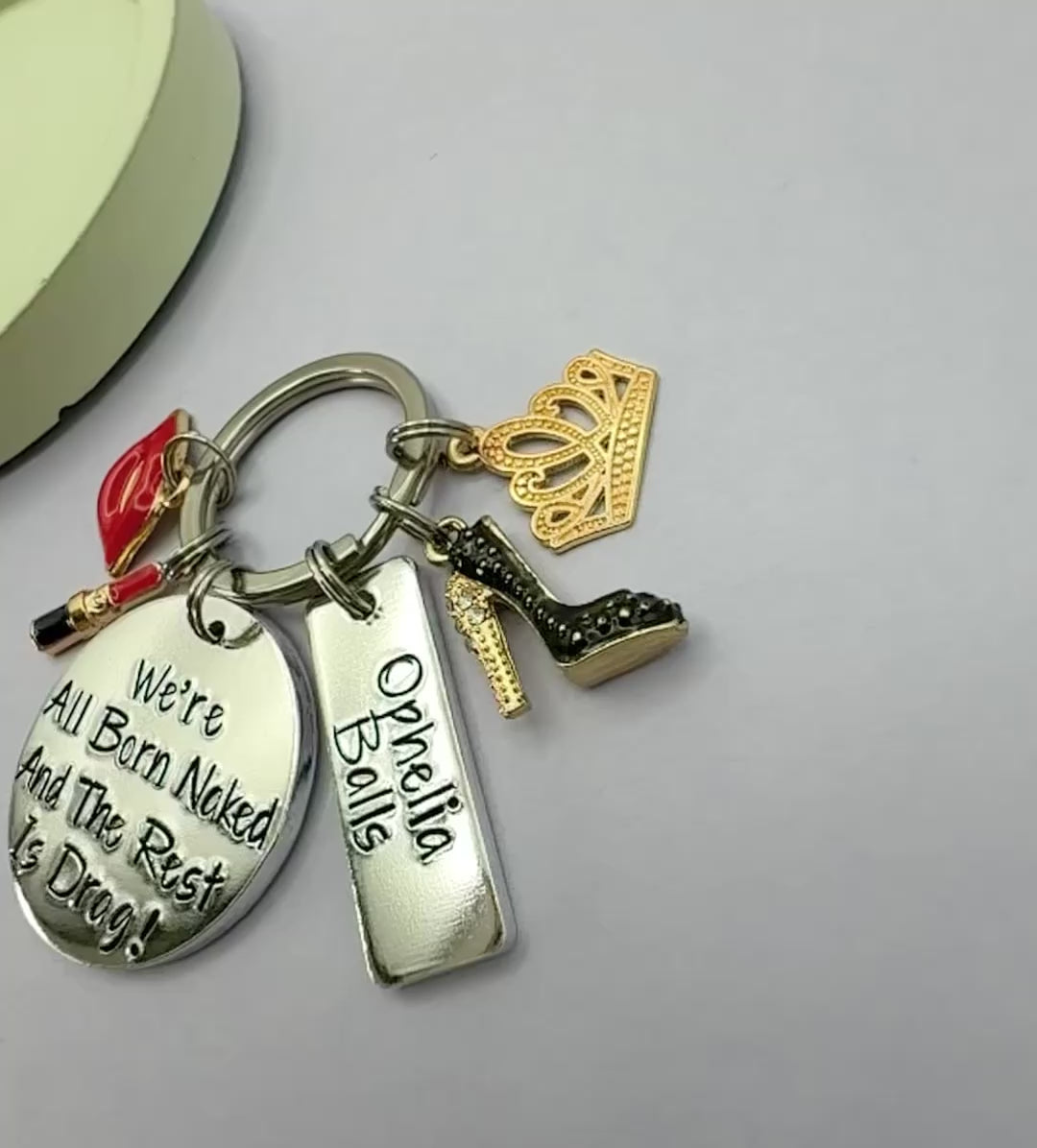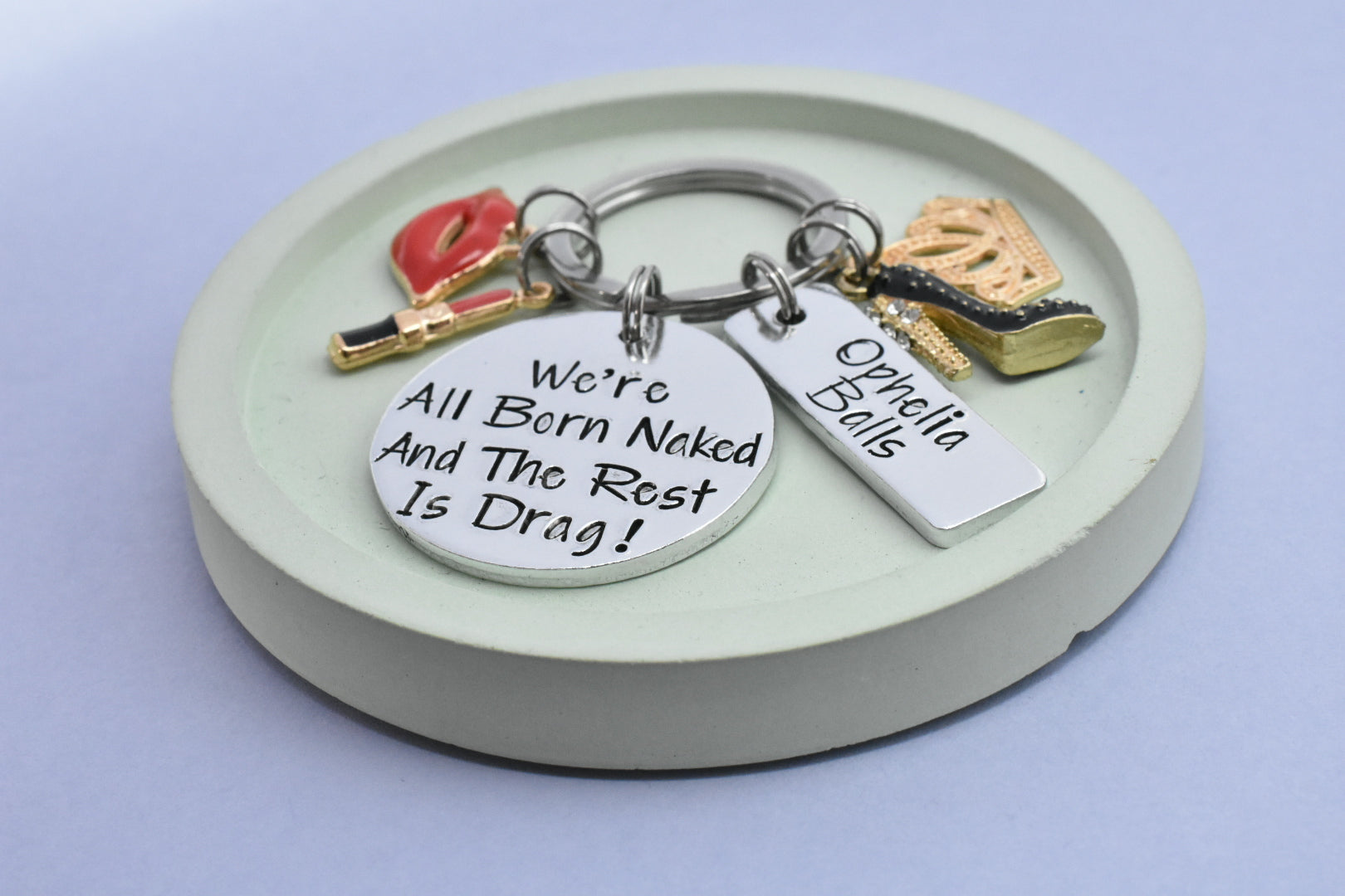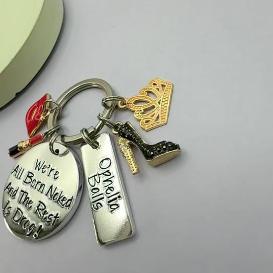 💋 We’re All Born Naked and the Rest Is Drag! Keyring 💋 Personalised Tag & Glam Charms