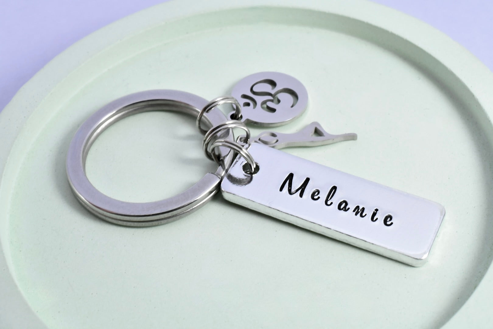 Personalised Yoga Keyring • Spiritual Key Ring • Yoga Pose Keychain • Om Gift • Meditation • Yogi Gift
