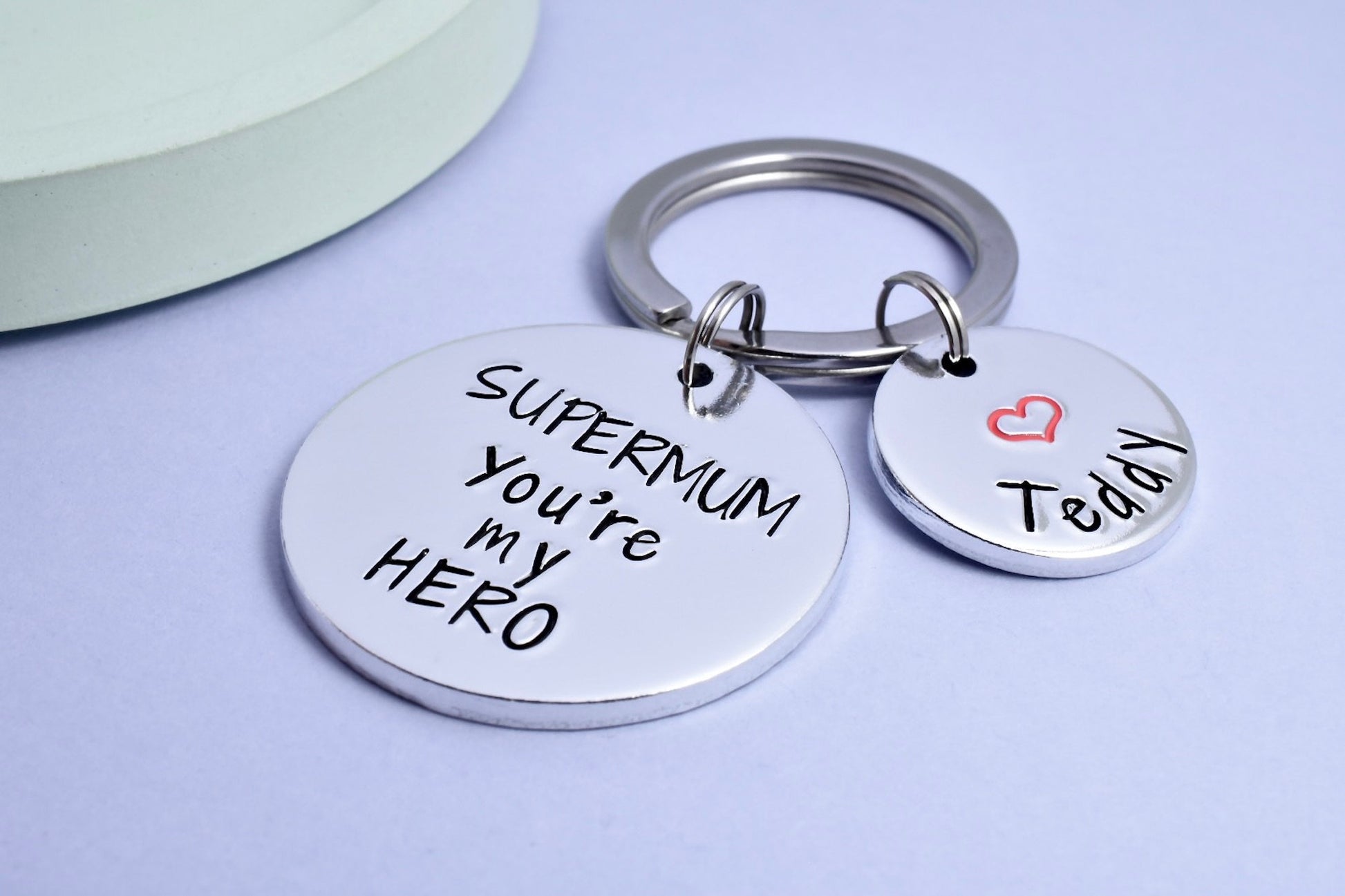 SUPERMUM You're My HERO Keyring • Personalised Gift For Parent • Gift For Mum • Sweet Mother's Day Present • Key Chain From Young Child