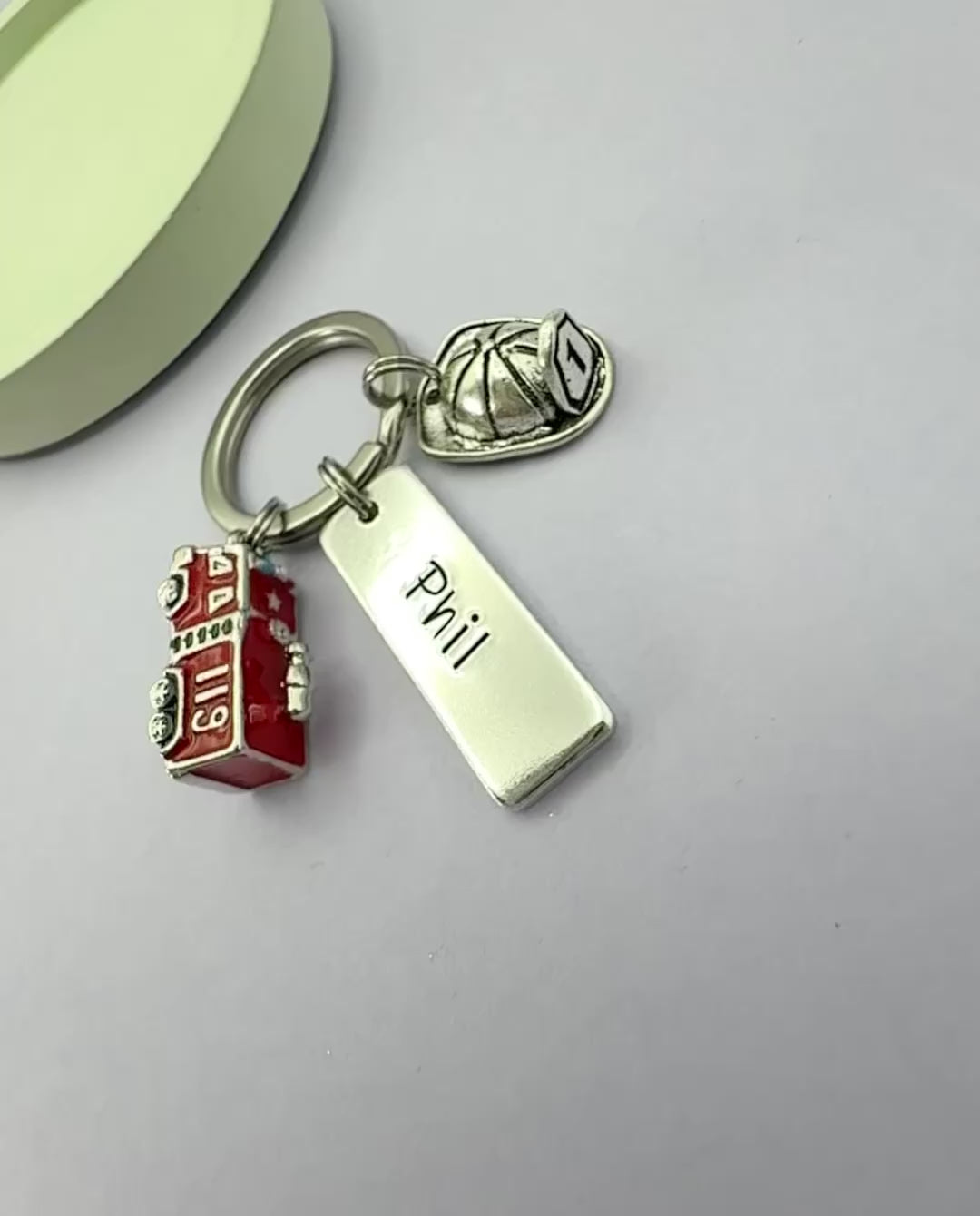 Personalised Firefighter Keyring: Fire Engine Charm, Stay Safe Gift